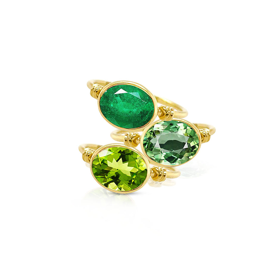 Love Knot ring in Green Tourmaline and 18ct Yellow gold