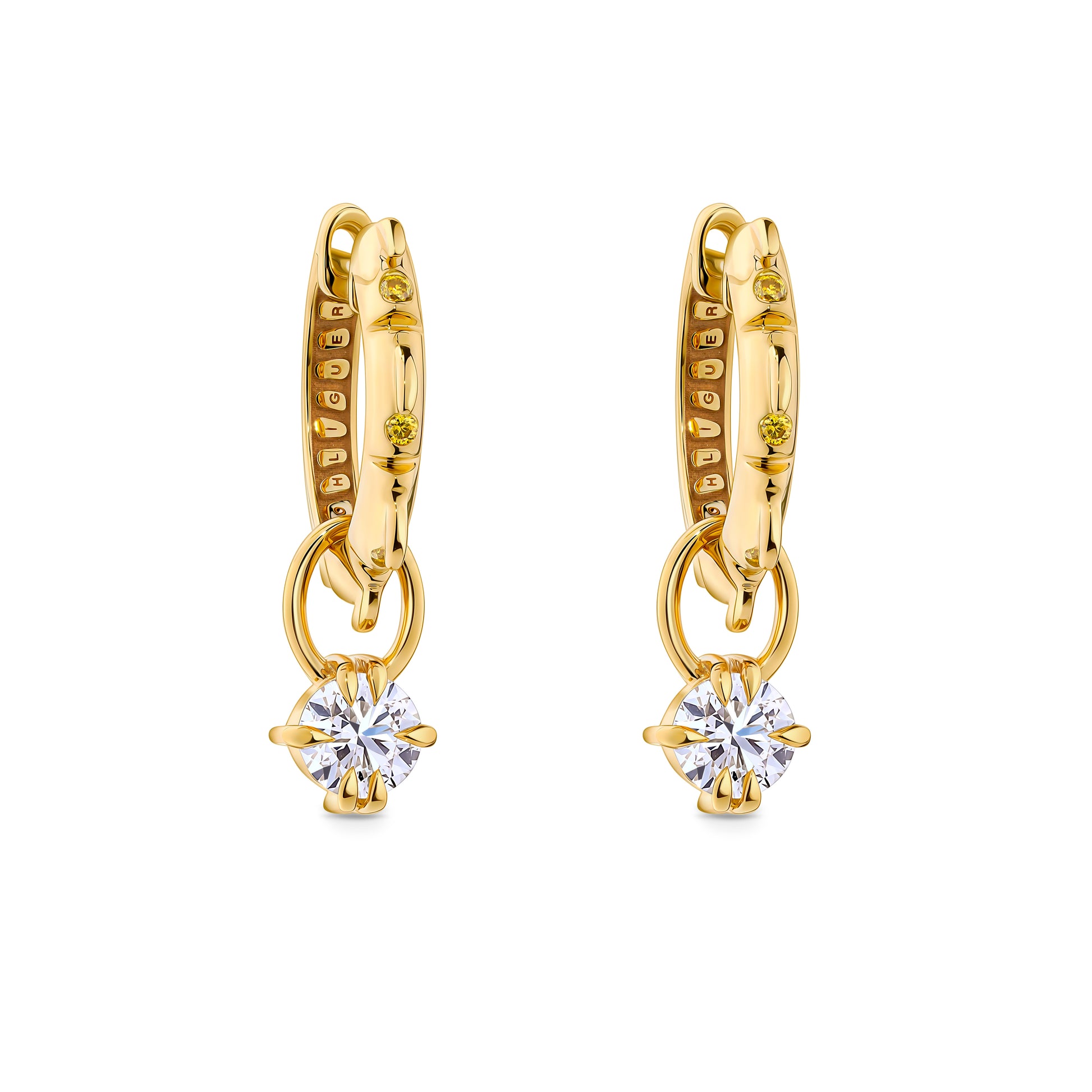 Croc Tail Yellow Diamond Huggies with Diamond Droplets
