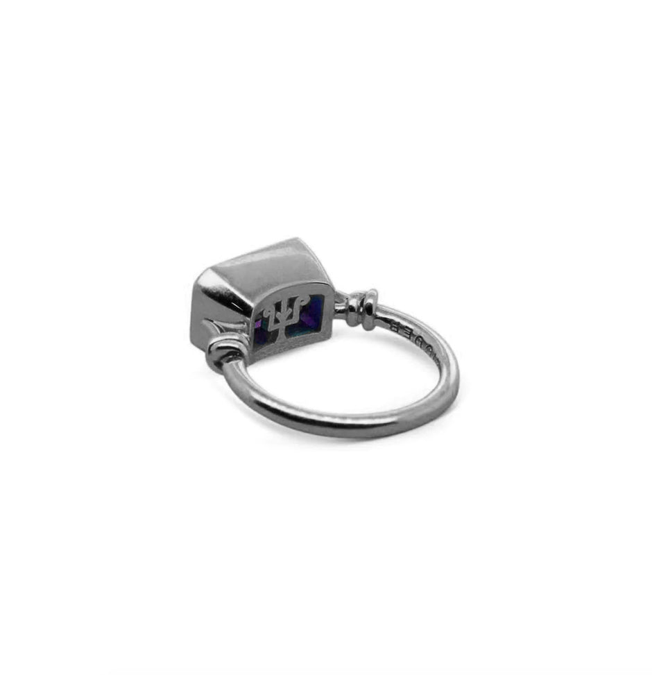 One of a Kind Emerald cut Amethyst Namesake Signet ring in Lapis and 18ct Yellow gold