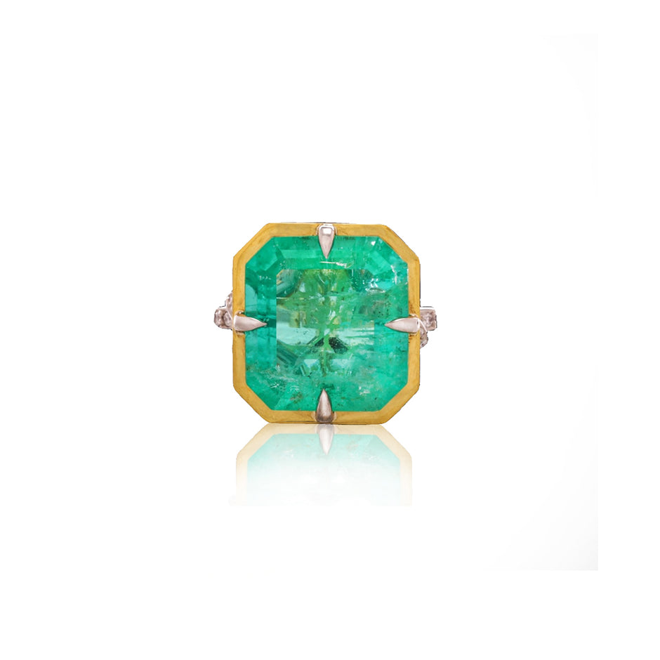 One of a Kind 5.70ct Forget Me Knot Emerald ring in 22ct Yellow Gold & Platinum