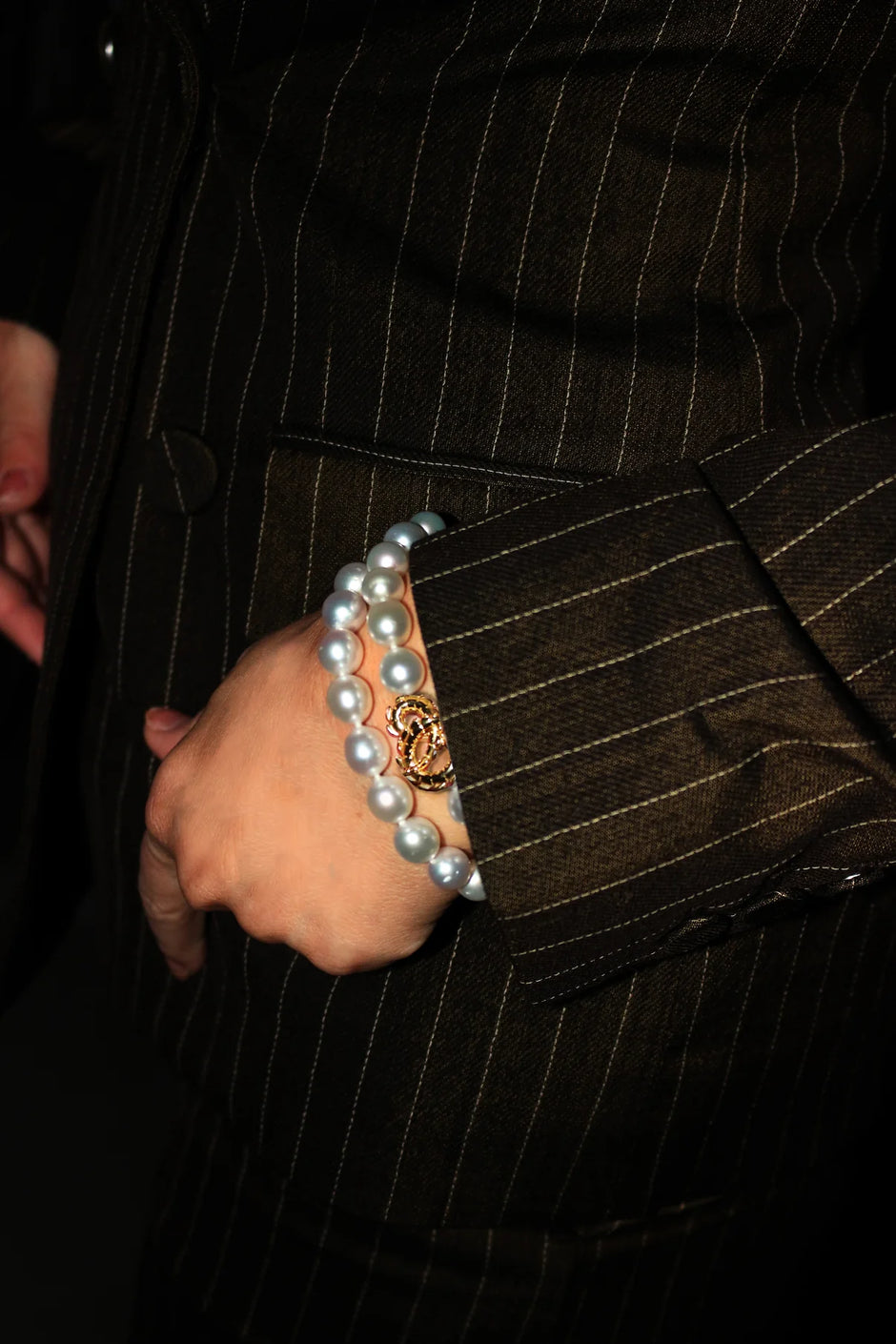 Lover's Croc Pearl Collar with Blue South Sea Pearls with Diamonds
