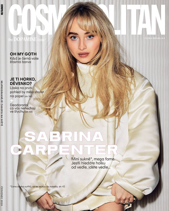 Sabrina Carpenter wearing over 20cts of OHLIGUER emeralds for the cover of Cosmopolitan.