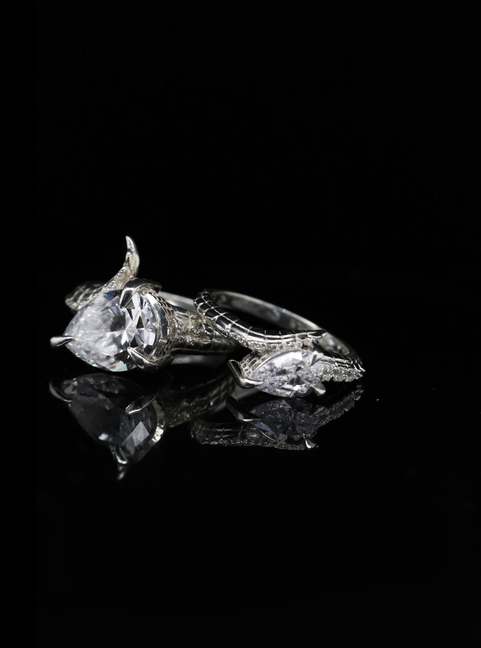 Croc Tail Ring with Pear Cut Diamond in 18ct White Gold