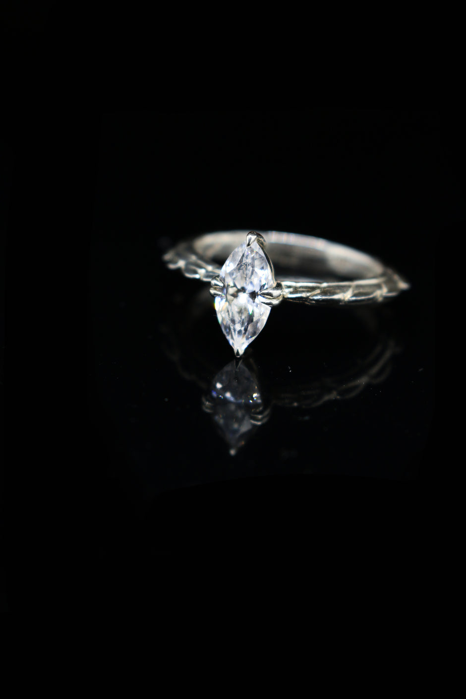 Marquis Cut Diamond Croc Tail ring in 18ct White Gold