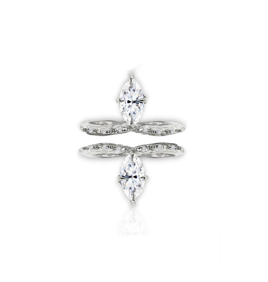 Marquis Cut Diamond Croc Tail ring in 18ct White Gold & Diamonds