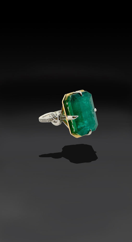 8.57ct Colombian Emerald Forget Me Knot ring in 22ct yellow gold and platinum