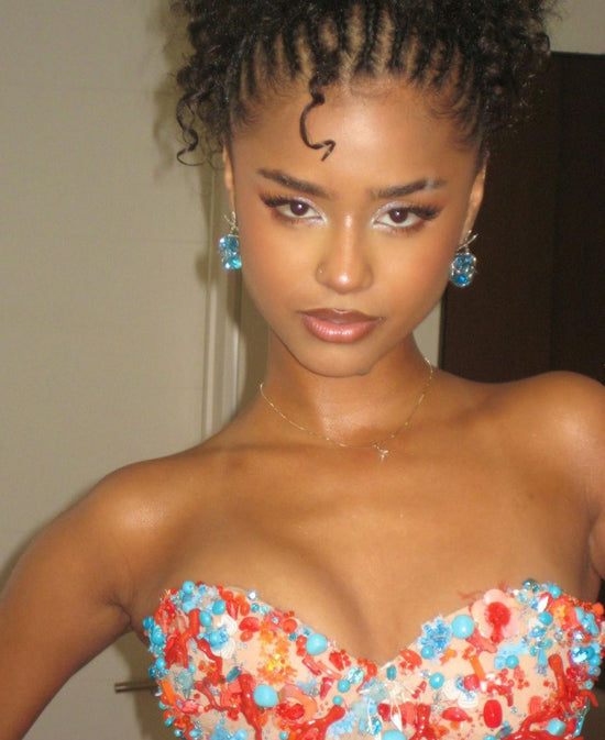 Fierce Doechii in the Ohliguer Icon Croc Studs with 4ct pear diamonds at the VMAS.
