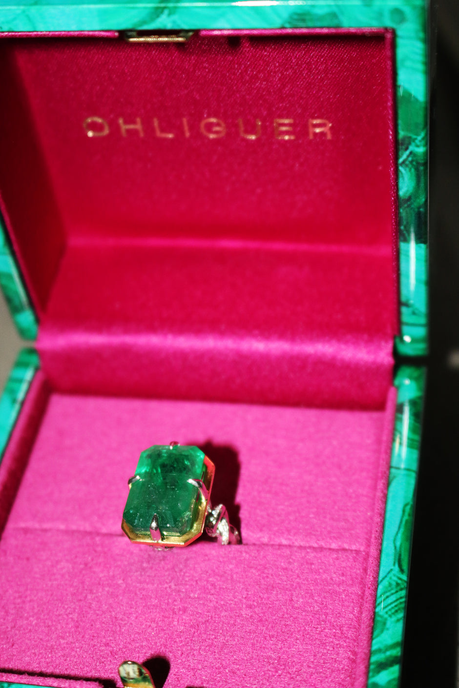 One of a Kind 5.70ct Forget Me Knot Emerald ring in 22ct Yellow Gold & Platinum