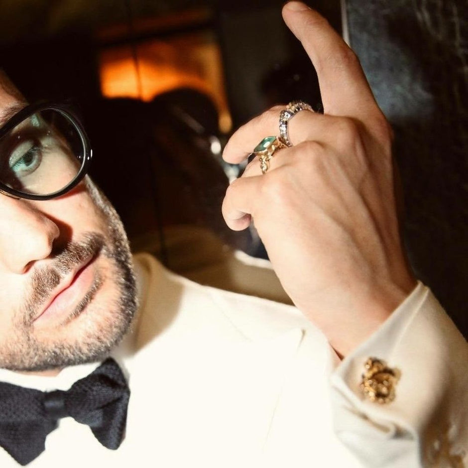 One Of A Kind 12.68ct Cushion Cut Emerald Forget Me Knot ring with emeralds