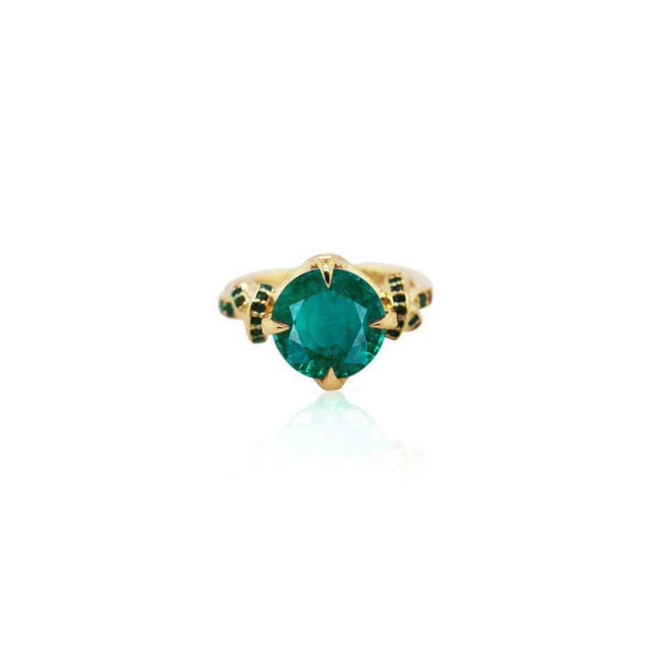 2ct Forget Me Knot ring with Round Brilliant Cut Emerald and Emeralds in 18ct yellow gold