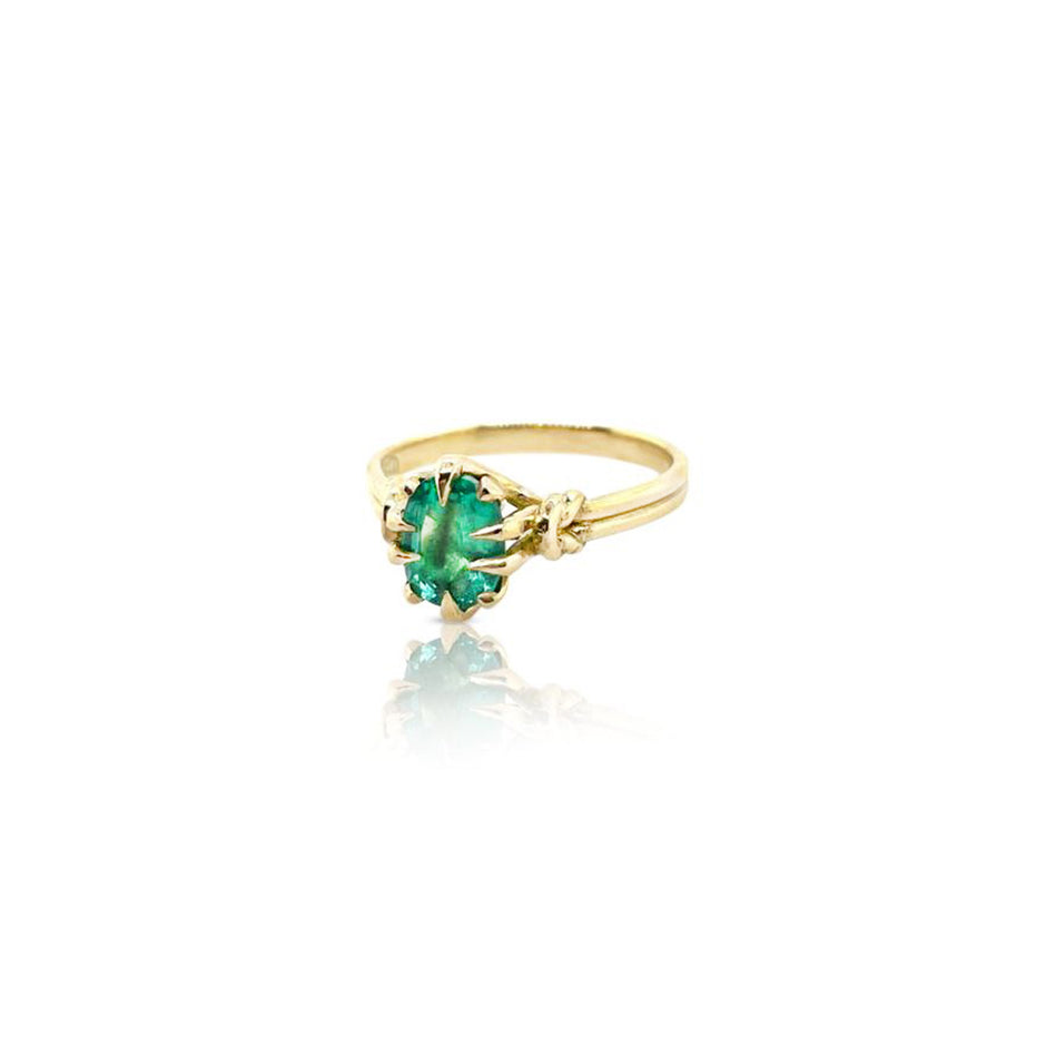 Emerald Chunky Reef Knot Ring in 18ct Yellow Gold