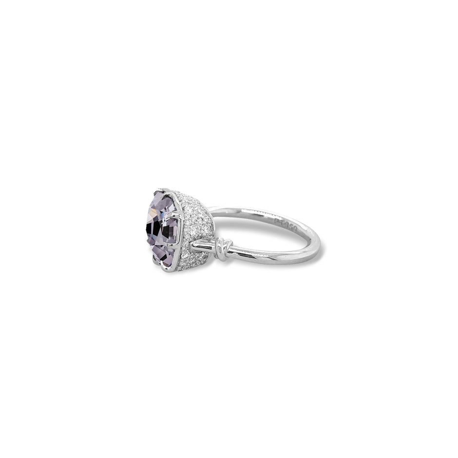 One of a Kind Forget Me Knot Ring with Grey Spinel in 18ct White Gold