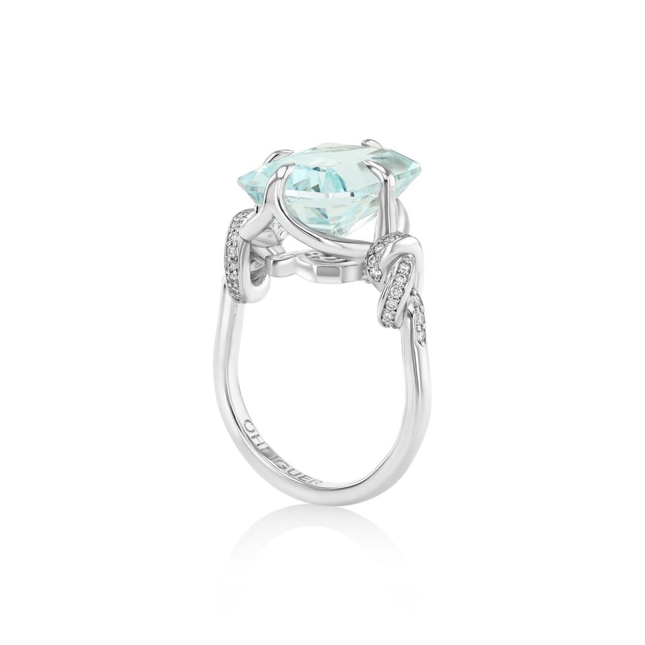 Iconic Aquamarine Knot ring in 18ct white gold and diamonds