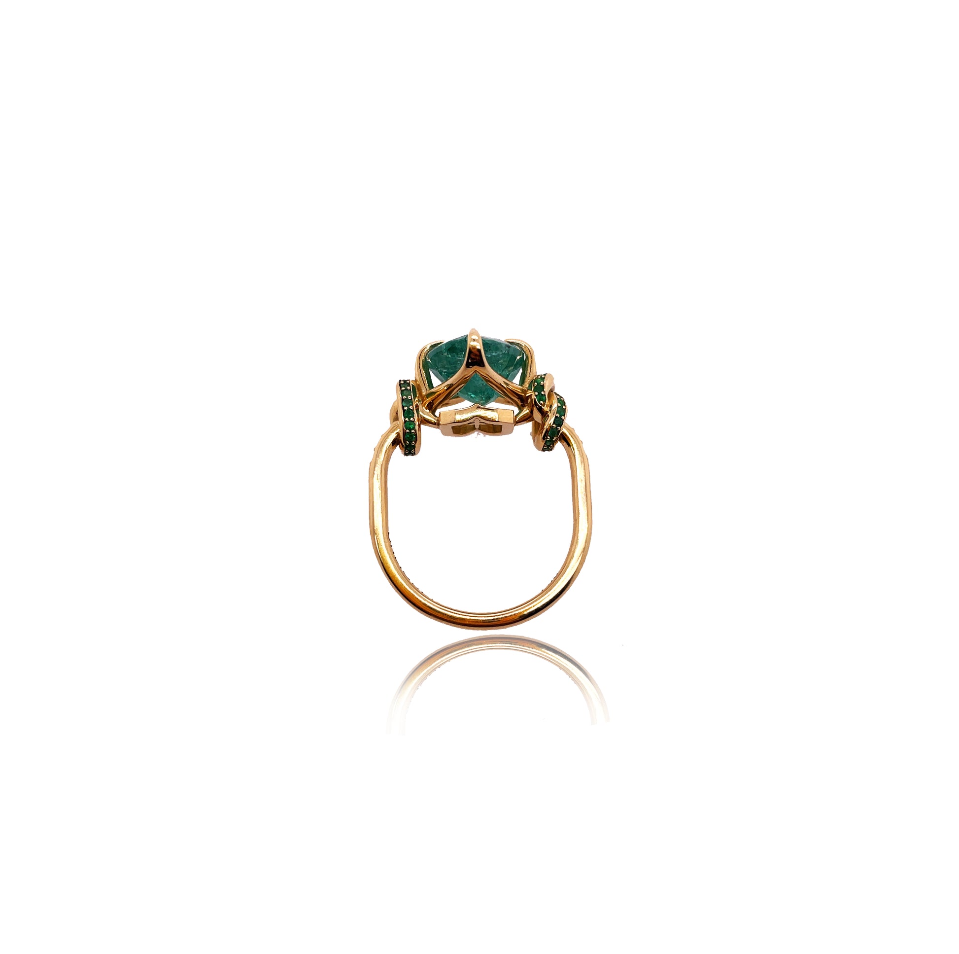 4ct Forget Me Knot Emerald ring with Emeralds in 18ct yellow gold