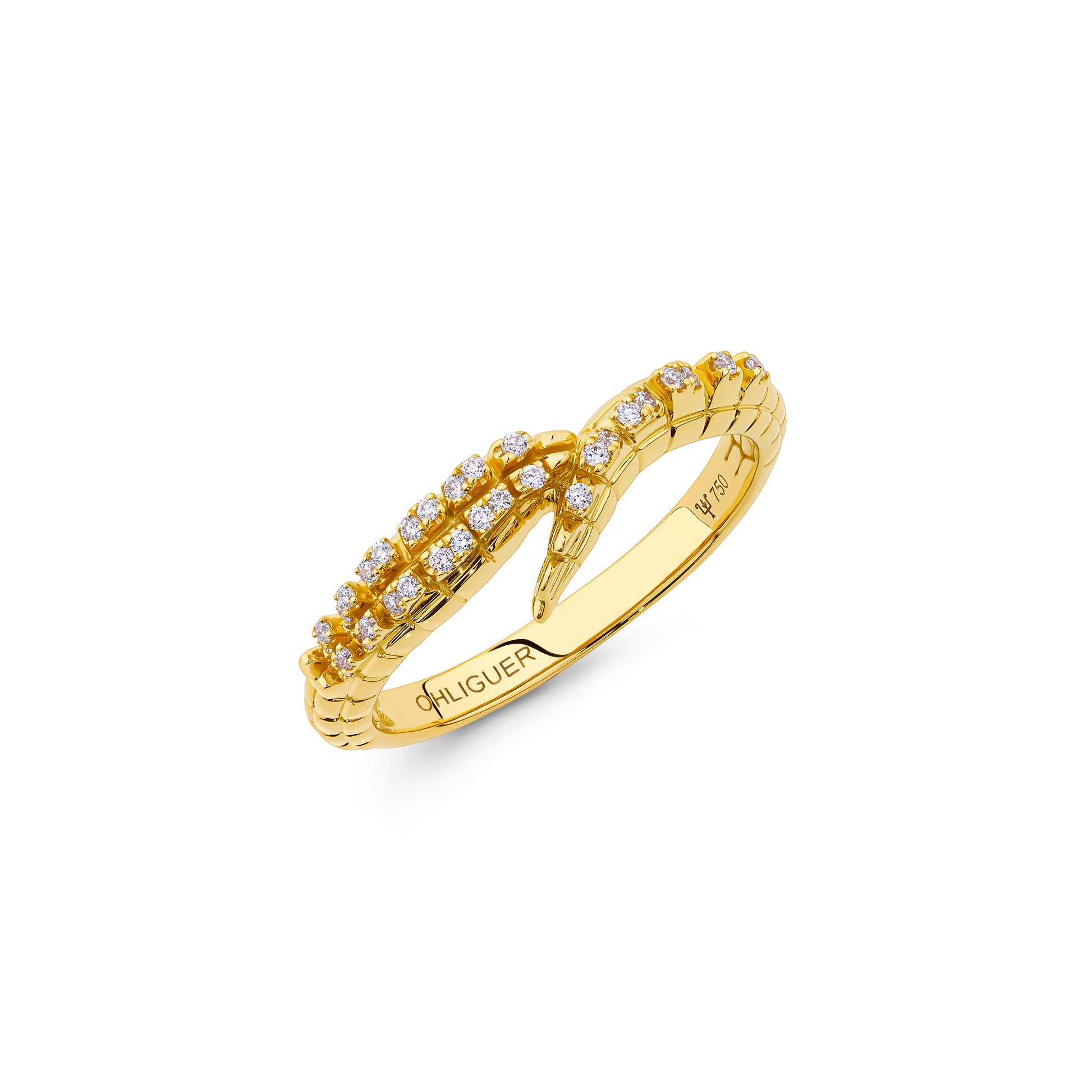 Croc Tail Ring Skinny in 18ct Yellow Gold & Diamonds