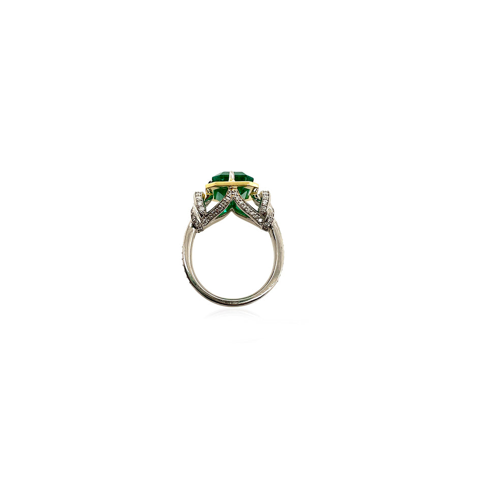 One of a Kind 2ct Forget Me Knot Emerald ring with Petals