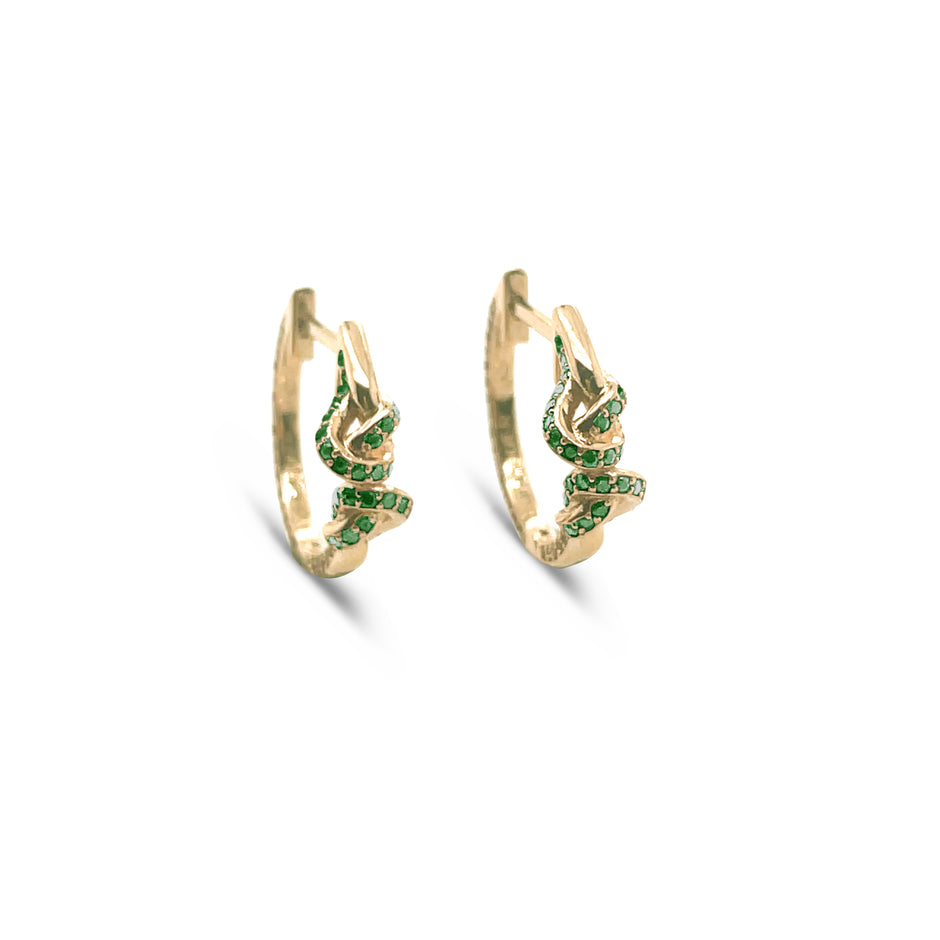 Double Knot Emerald Huggies in 18ct Yellow Gold