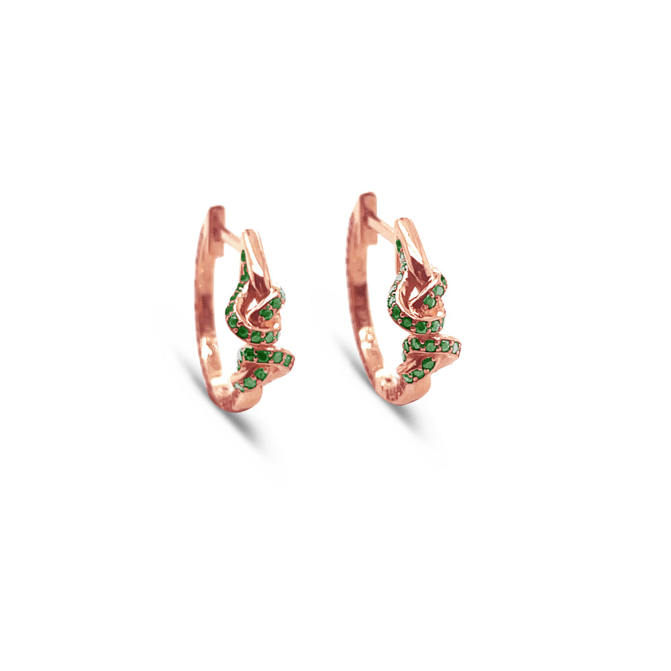 Double Knot Emerald Huggies in 18ct Rose Gold