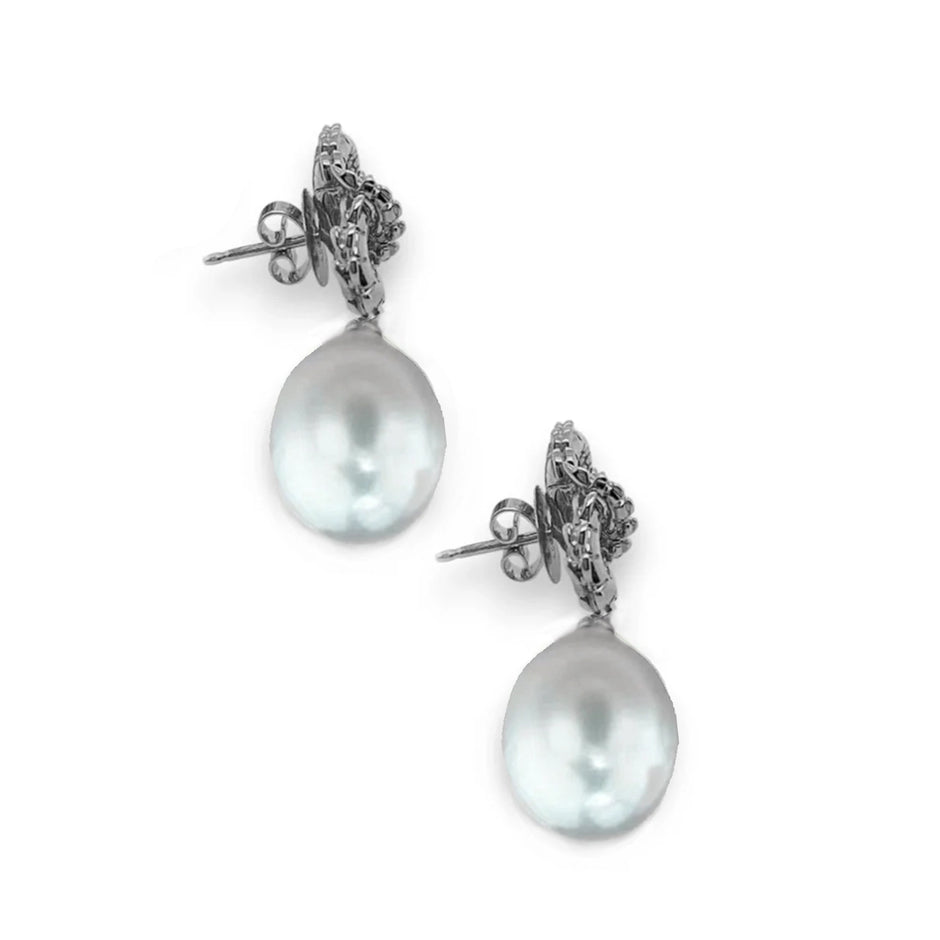 Lovers Croc Tail Earrings with Blue South Sea Pearls in 18ct White Gold