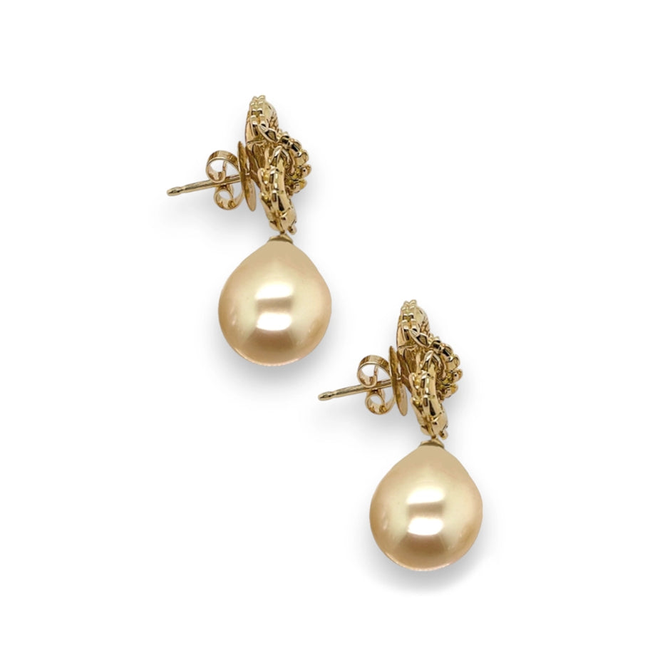 Lovers Croc Tail Earrings with Golden South Sea Pearls in 18ct Yellow Gold and Yellow Diamonds