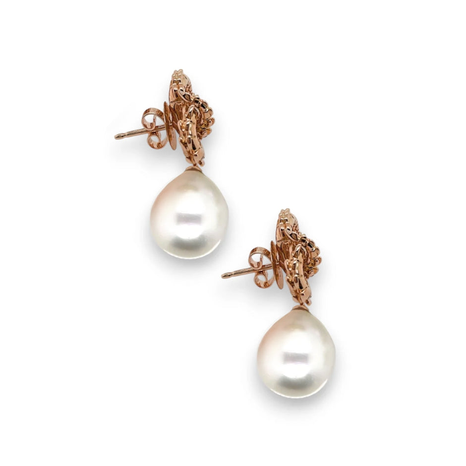 Lovers Croc Tail Earrings with White South Sea Pearls in 18ct Rose Gold